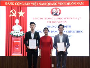 Sáng ngày 11/09/2025, Chi bộ Sinh viên của Đảng bộ Trường Đại học Yersin Đà Lạt đã trang trọng tổ chức Lễ kết nạp Đảng viên cho sinh viên Thái Trường Thắng – Lớp Quan hệ công chúng Khóa 20, vào hàng ngũ của Đảng Cộng sản Việt Nam.