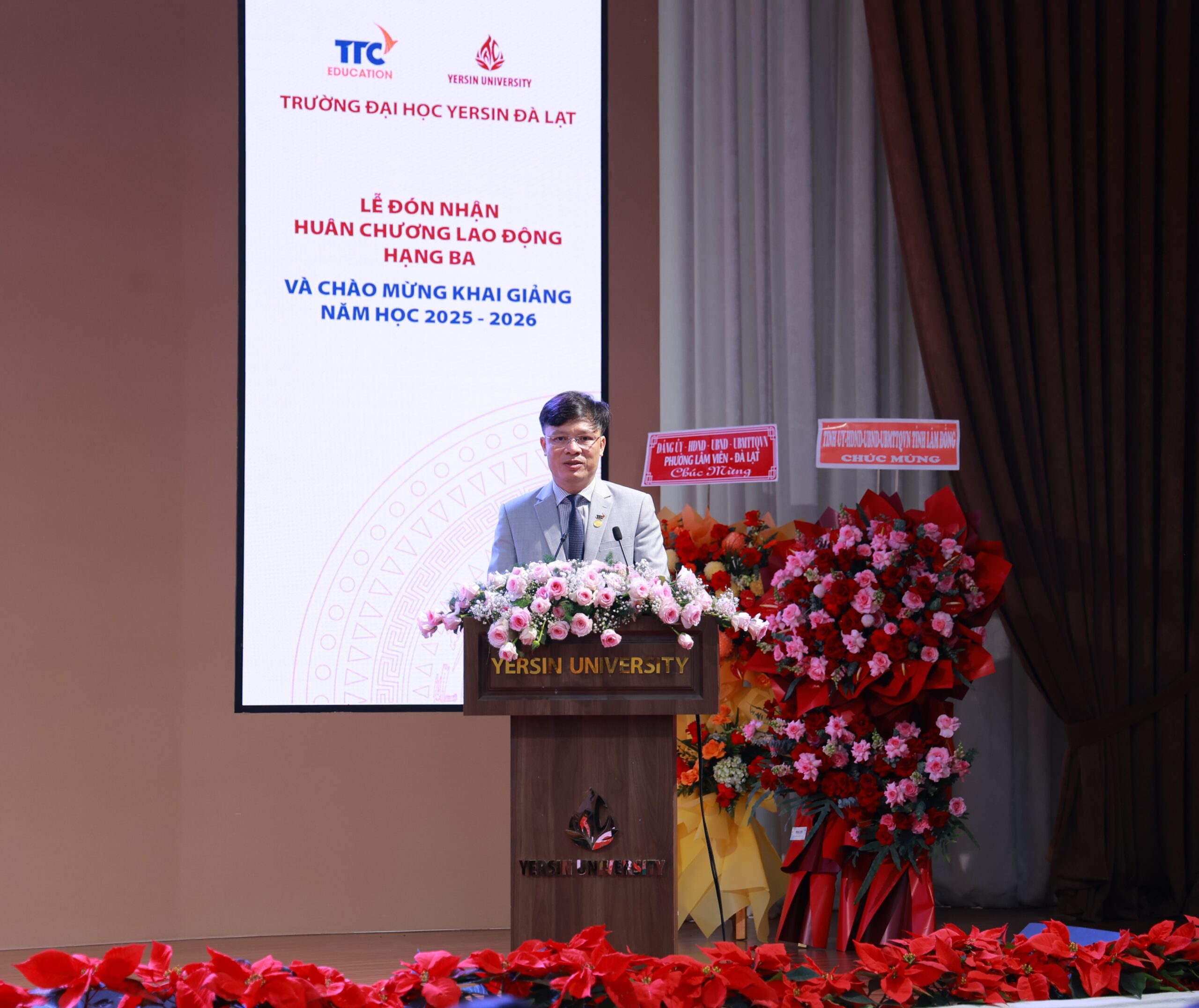 Tại buổi lễ, đại diện lãnh đạo tỉnh Lâm Đồng đã trao tặng Huân chương Lao động hạng Ba và Bằng khen của Chủ tịch nước cho Trường Đại học Yersin Đà Lạt nhằm ghi nhận những đóng góp quan trọng trong việc đào tạo nguồn nhân lực tại tỉnh Lâm Đồng, góp phần vào sự nghiệp xây dựng chủ nghĩa xã hội và bảo vệ tổ quốc.