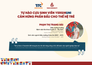 Chúc chị Phạm Thị Trang Đài luôn mạnh khỏe, hạnh phúc và tiếp tục lan tỏa cảm hứng phấn đấu, trở thành động lực cho thế hệ sinh viên trẻ YersinUni trên con đường theo đuổi đam mê và khát vọng trong lĩnh vực Điều dưỡng và chăm sóc sức khỏe!