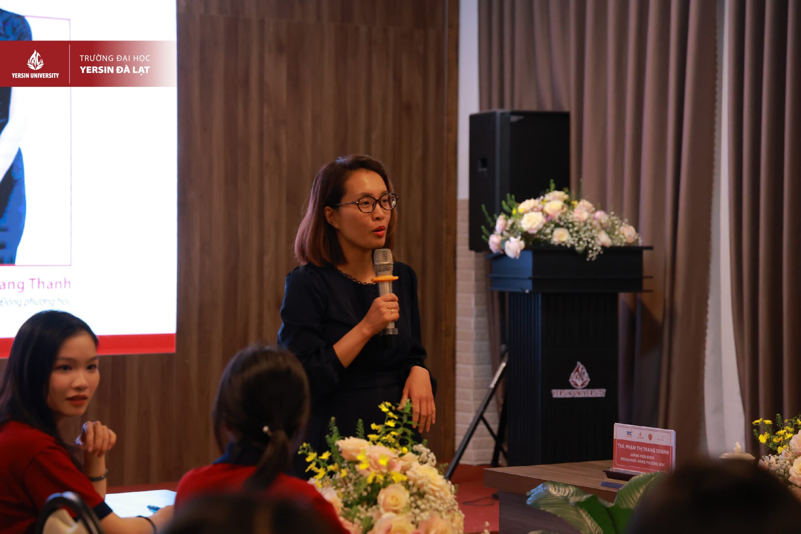 Tại chương trình, các bạn sinh viên đã được lắng nghe những chia sẻ truyền cảm hứng từ ThS. Phạm Thị Trang Thanh – Giảng viên Khoa Ngoại ngữ và Đông phương học. Với phong thái cởi mở và gần gũi, cô mang đến cho Yersiners nhiều giá trị thiết thực: