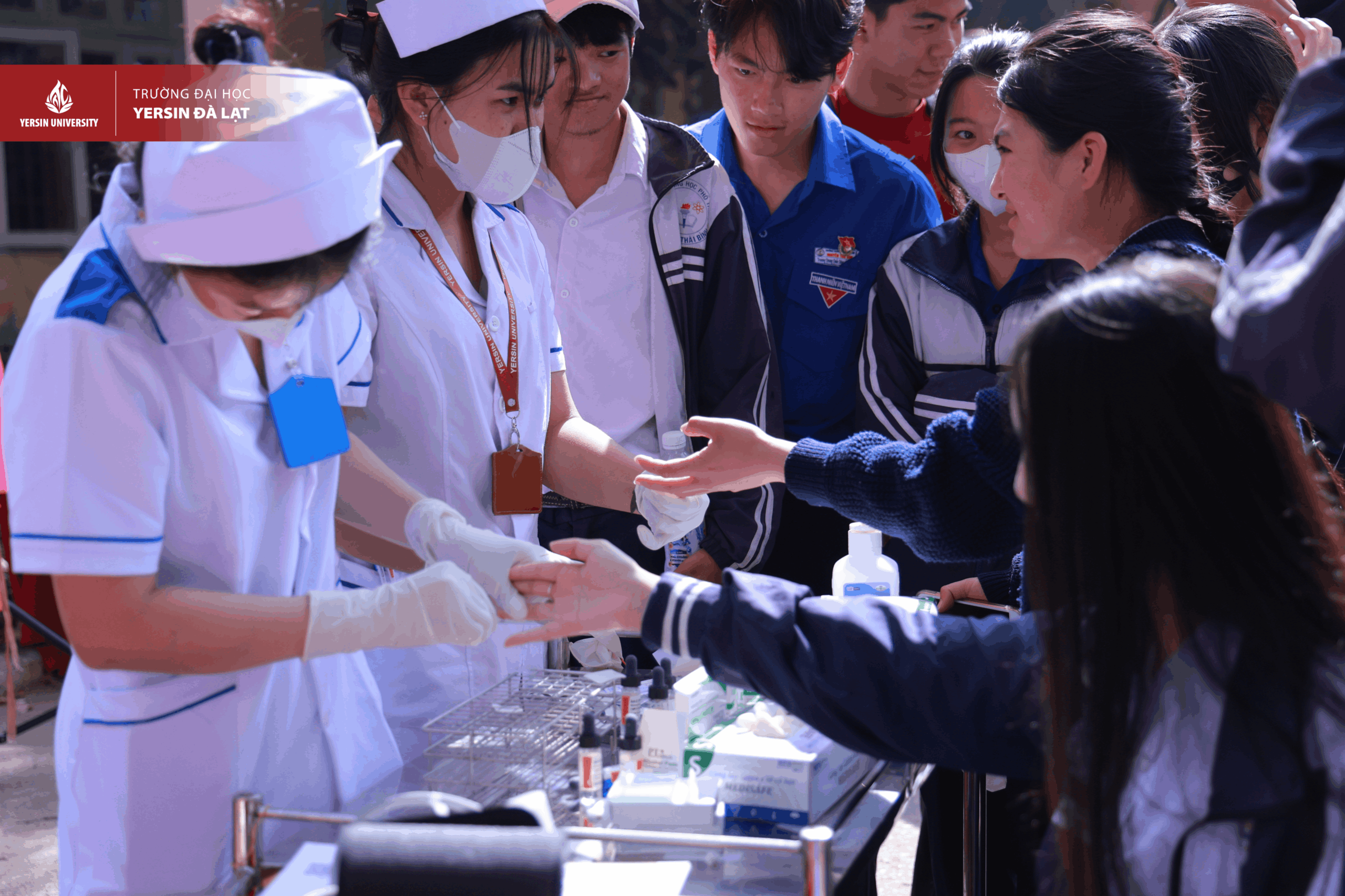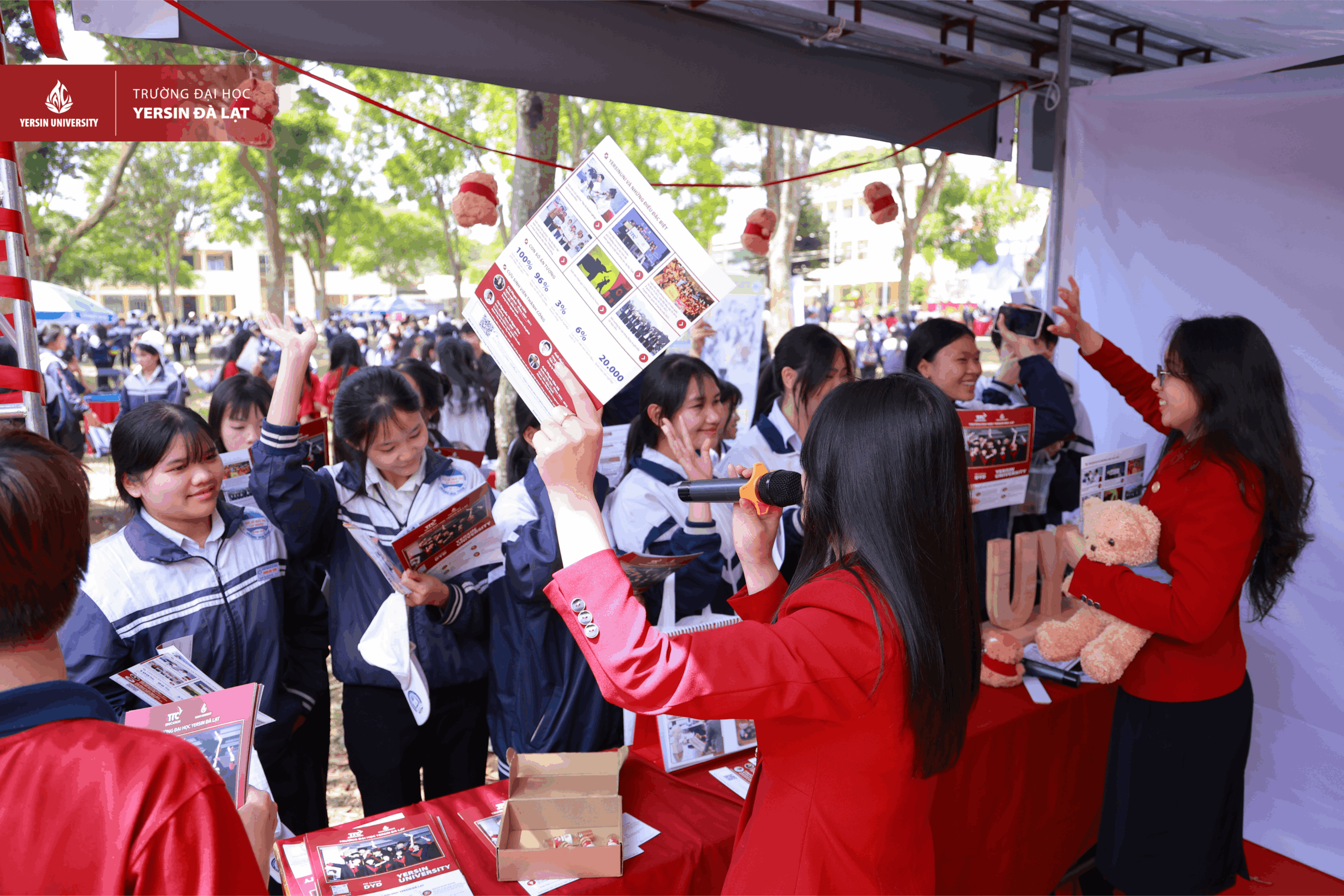 Không chỉ dừng lại ở hoạt động tư vấn, khu vực trải nghiệm của YersinUni còn tạo nên không khí sôi động với nhiều hoạt động tương tác hấp dẫn. Học sinh được giao lưu cùng giảng viên và sinh viên các ngành Đông phương học, Điều dưỡng, Kiến trúc, tham gia trò chơi, trải nghiệm ngành học và hòa mình vào không gian trẻ trung, thân thiện… Hình ảnh sinh viên YersinUni năng động, nhiệt huyết và sẵn sàng hỗ trợ đã góp phần lan tỏa mạnh mẽ tinh thần kết nối, truyền cảm hứng và đồng hành cùng học sinh.