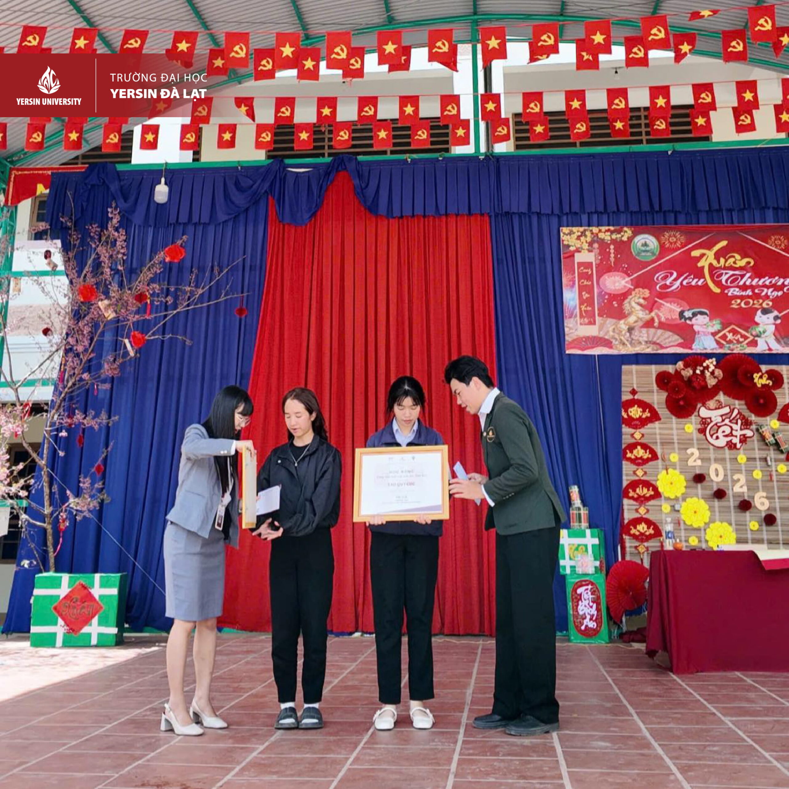 Vừa qua, trong khuôn khổ Hội xuân THPT LangBiang, Đội Đại sứ Sinh viên Yersin đã trao tặng 02 suất học bổng “Cùng bạn viết tiếp ước mơ đại học” (tiền mặt và ký túc xá miễn phí) giúp các em học sinh Trường THPT LangBiang tiết kiệm được hơn 100 triệu. Đây không chỉ là học bổng khuyến khích tinh thần vượt khó, vươn lên trong học tập, mà còn là cam kết đồng hành dài lâu của YersinUni dành cho những học sinh có ý chí, nghị lực.